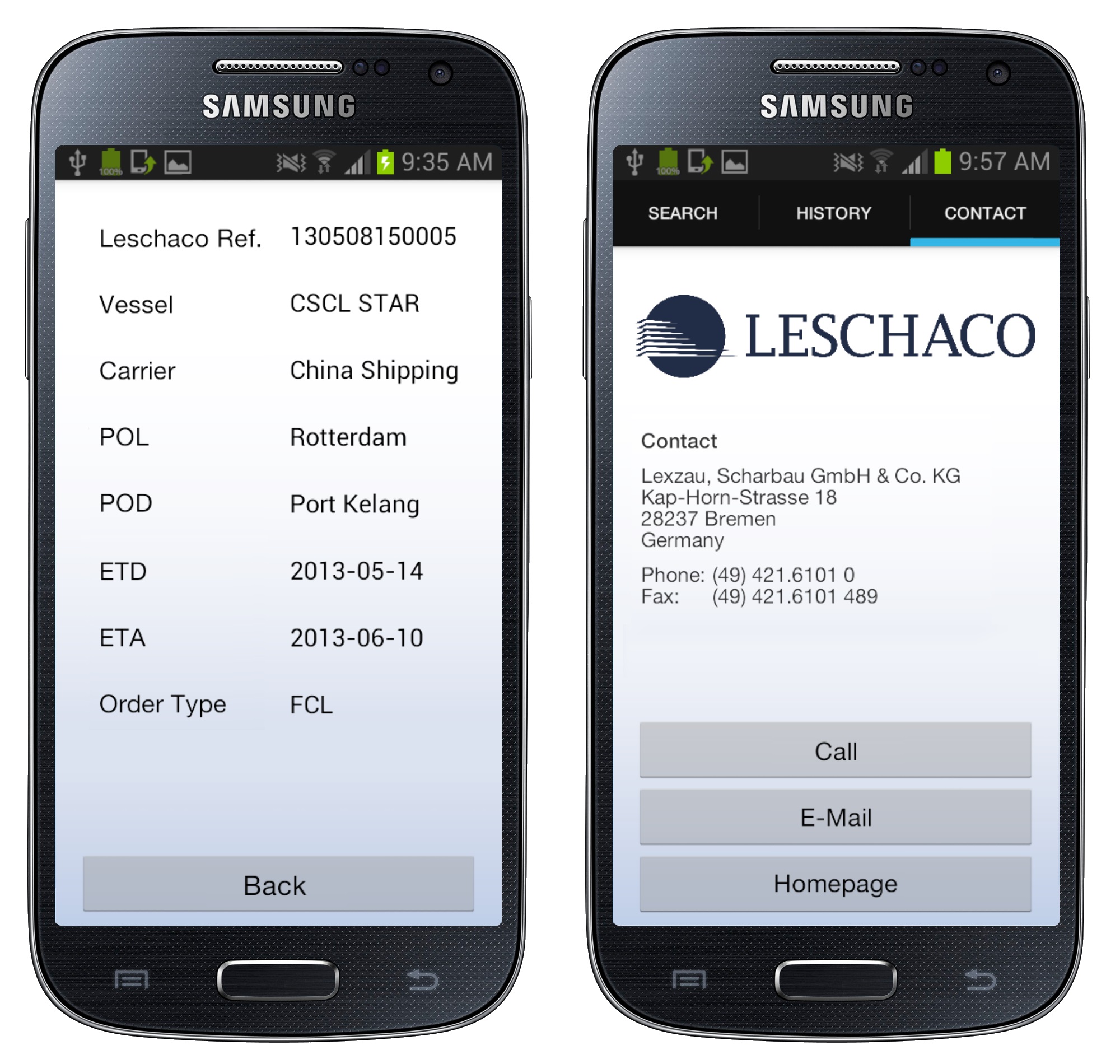 Bremen, 13. Februar, 2014 – LESCHACO weltweiter Anbieter von Logistiklösungen macht seine Leschaco T&T-App nun auch für ANDROID Smartphones verfügbar.