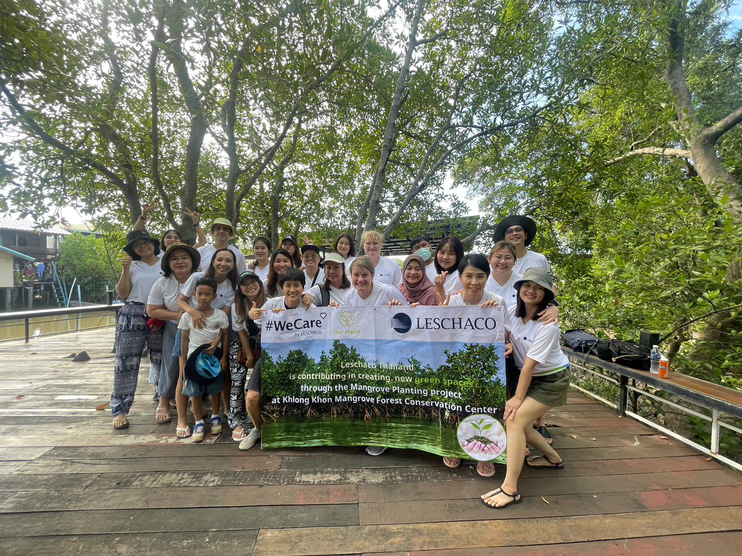 On July 7th 2023, 28 employees from Leschaco Thailand and Leschaco Services, participated in a meaningful tree planting event at the Khlong Khon Mangrove Forest Conservation Center in Samut Songkhram province. Together, we successfully planted 140 trees in the designated area, contributing to the restoration and conservation of the mangrove forest.